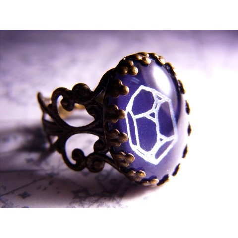 カボションの中で結晶図が煌めくリングです。