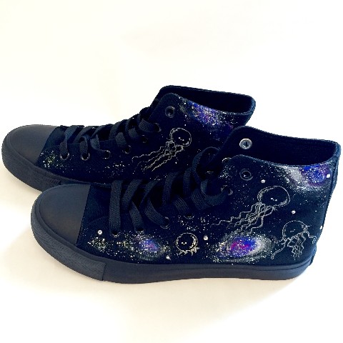くらげさんや宇宙柄は、すべて手描き。世界に一つだけの、オリジナルスニーカーが完成いたします。