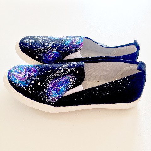 くらげさんや宇宙柄は、すべて手描き。世界に一つだけの、オリジナルスリッポンが完成いたします。