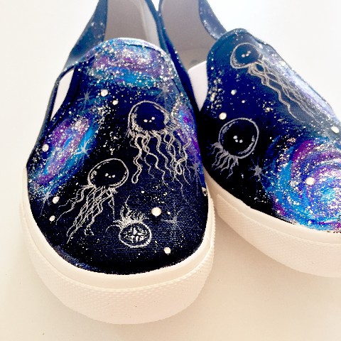 くらげさんや宇宙柄は、すべて手描き。世界に一つだけの、オリジナルスリッポンが完成いたします。