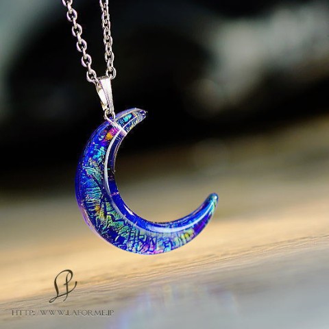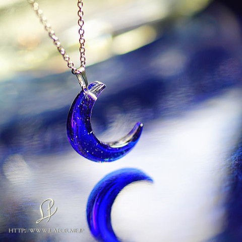 高級輸入素材ガラスを使用し丁寧にお作りしたラフォルムオリジナルのガラスペンダント。コバルトブルーをベースに内部には無限の表情を魅せる美しいレインボーラメが煌きます。ステンレス製チェーンと共に、高級感のある世界にひとつのペンダントに仕上がりました。