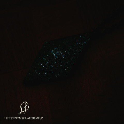 コバルトブルーをベースに、見る角度や光の当たり方で表情を変える美しいラメを施しています。暗闇では神秘的で優しい光を放ちます。