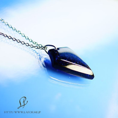 高級輸入素材ガラスを使用して、模様の表現から全ての面を鏡面まで手磨きで仕上げた、ガラスアクセサリー。