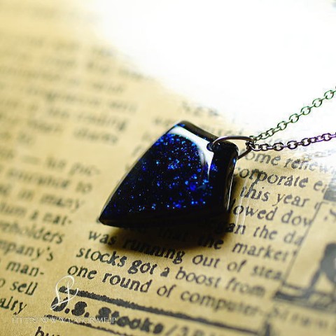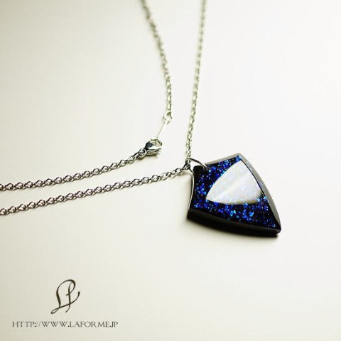 作品ID:2545 / 作品コード:161115-215443 / アメリカンガラス / 約33×26×8mm / 青系 / イリデセント(ラメ)加工 / あずきチェーン ステンレス製 45cm / -