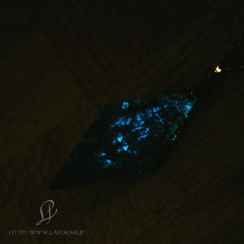 作品ID:2547 / 作品コード:161115-221921 / アメリカンガラス / 約45×20×14mm / 青緑系 / イリデセント(ラメ)加工 / 蓄光加工 / あずきチェーン ステンレス製 45cm チャーム付き / -