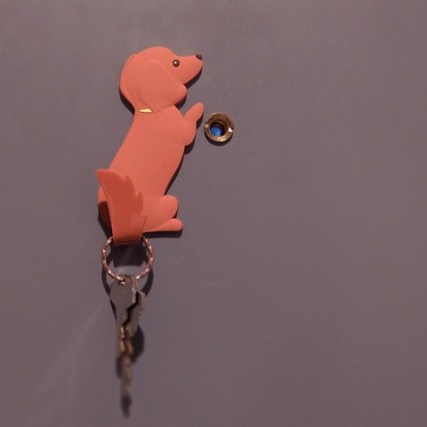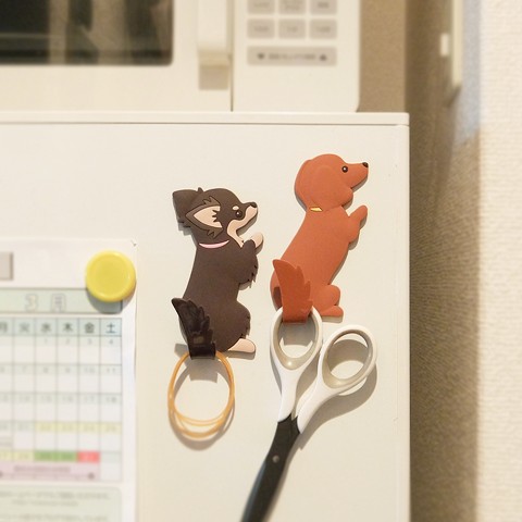 しっぽを曲げるとフックに変身!磁石内蔵で、ドアや冷蔵庫にペタッと貼れるマグネット付きフックです。