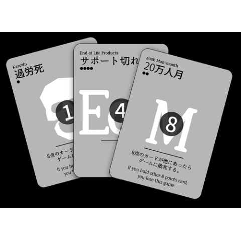 デスマーチにならないようにITプロジェクトの要件定義を行うブラックジャック風のカードゲームです。