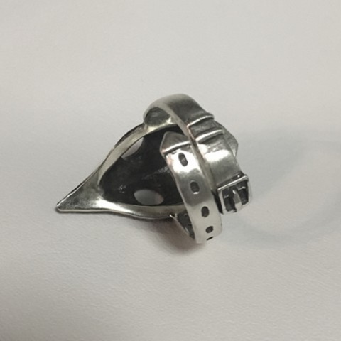 中世ヨーロッパで黒死病(ペスト)が大流行した時、治療に当たる医師がつけていた「ペストマスク」をモチーフにしたリング。