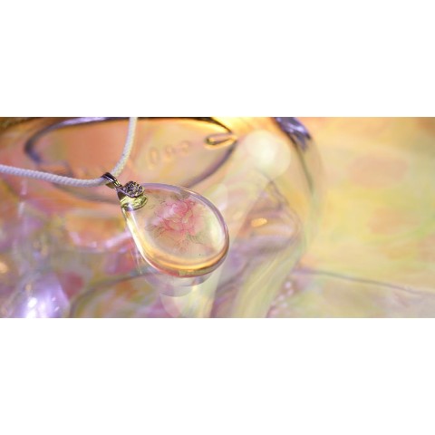 ガラスアクセサリー / コレクション:ネックレス・ペンダント / 130124-174834 / 766 / ※花のデザインの転写加工 / アメリカンガラス / 約35×27×7mm / 白系・透明 着色加工 / La forme