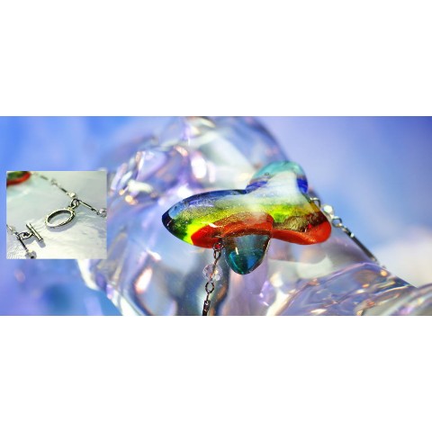 ガラスアクセサリー / コレクション:ブレスレット・アンクレット / 130123-154119 / 760 / オリジナルブレスレットチェーン付き / アメリカンガラス / 約22×37×8mm / 赤系オレンジ系黄色系黄緑系緑系青緑系青系青紫系紫系赤紫系 イリデセント(ラメ)加工グラデーション加工 / La forme