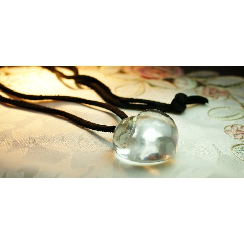 ボリューム感溢れるクリアーでシンプルなハート型ペンダントです。コロッとした丸いフォルムでかわいらしい作品です。40グラムと重量感と存在感があります。裏面はフラット(平ら)になっています。