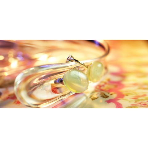 優しいバニラカラーをベースに、オパールのような優しく輝くラメを施したオーバルタイプのイヤリングです。