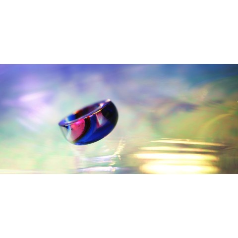 サイドを大胆にカットしたフォルムに色彩豊かなマーブル加工を施したデザインリングです。色違いの『Everlasting Ring ? 絆 ?』もぜひご覧くださいね。