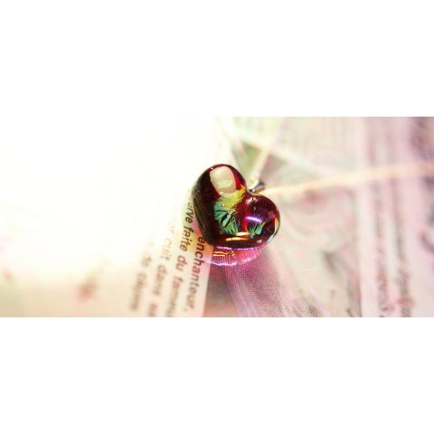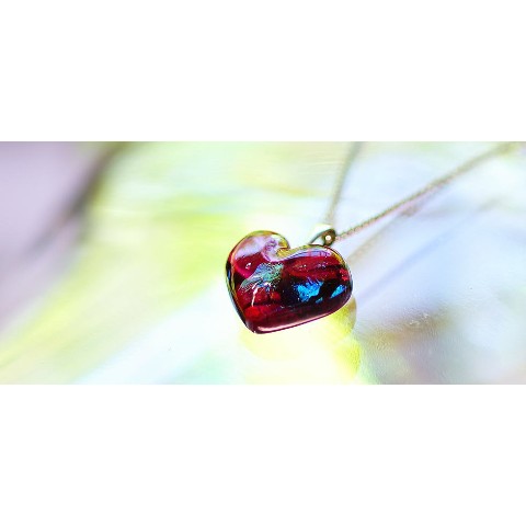 ガラスアクセサリー / コレクション:ネックレス・ペンダント / 130212-132056 / 690 / アメリカンガラス / 約13×15×7mm / 赤系 イリデセント(ラメ)加工 / 喜平チェーン シルバー色 40cm / La forme