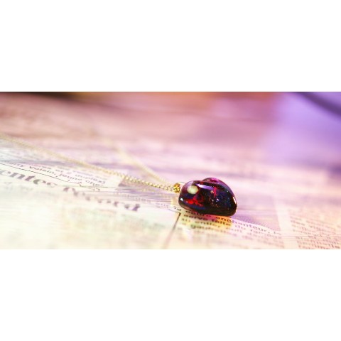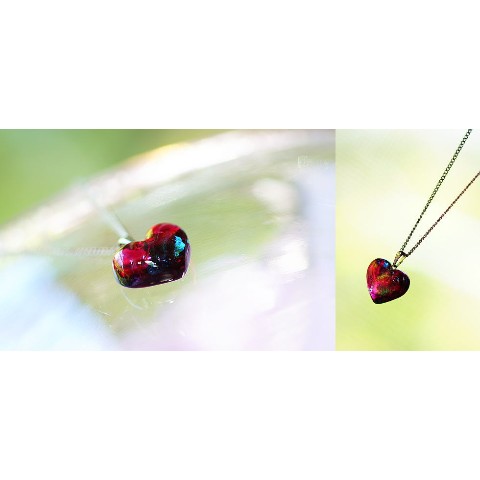 赤く情熱的な色合いのかわいらしいハート型フォルムのペンダントです。内部には美しいラメが煌きます。