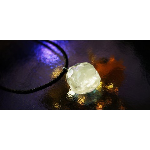 ”北欧の空の下で雪と氷が固まったような神秘的なアイスロックタイプネックレスです。存在感のある立体タイプのフォルムの中に美しい蓄光加工を施しました。ホタルの光のように神秘的で強めに光ります。ランダムなアイスロック加工を全体に施しています。