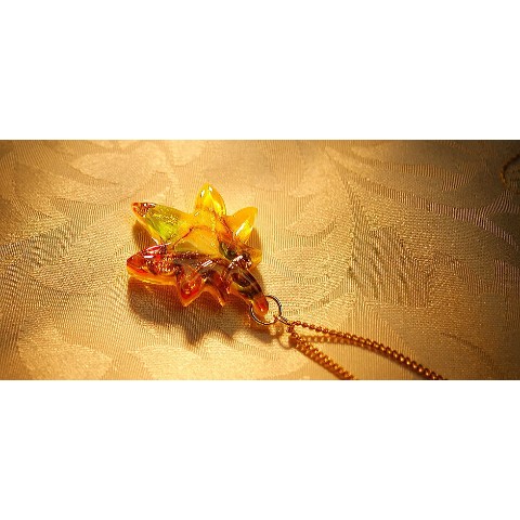 ガラスアクセサリー / コレクション:ネックレス・ペンダント / 121114-171551 / 656 / アメリカンガラス / 約28×28×8mm / 赤系オレンジ系黄色系黄緑系緑系 イリデセント(ラメ)加工マーブル加工 / 喜平チェーン ゴールド色 45cm / La forme