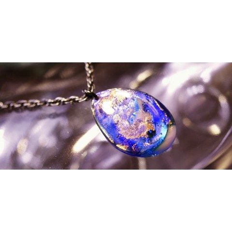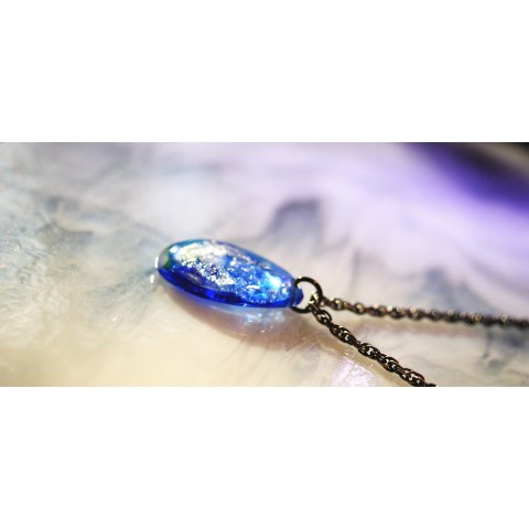 静かなクリスマスの夜、月明かりのもと深々と粉雪が降り積もっている、そんなイメージでお作りしたドロップタイプネックレスです。ブルー系の神秘的な色合いです。一つひとつ手作りのためマーブル模様はそれぞれ少しずつ違います。クリスマスプレゼントにぴったりの作品です。