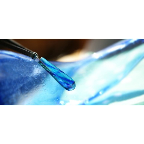 ガラスアクセサリー / コレクション:ネックレス・ペンダント / 121023-164418 / 610 / アメリカンガラス / 約33×9×9mm / 青緑系青系 マーブル加工 / 本牛革平コード 黒 100cm 結ぶタイプ / La forme