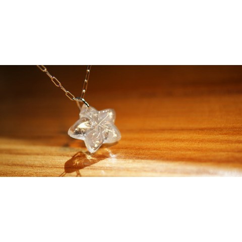 高級輸入素材ガラスを使用して、模様の表現から全ての面を鏡面まで手磨きで仕上げた、ガラスアクセサリー。
