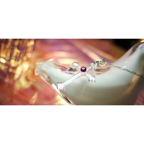 素敵な細身のデザインクロスです。クリスマスの夜には是非身に着けていただきたい。淡いピンク色をベースにした優しいイメージのペンダントです。