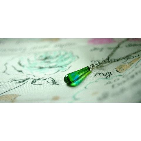 クリアーベースに、グリーンやブルーをマーブル加工したシンプルで美しいしずくタイプネックレスです。