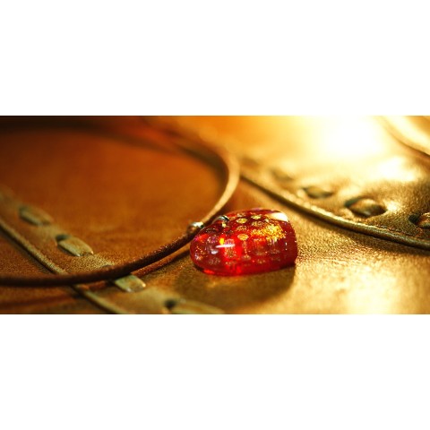 ガラスアクセサリー / コレクション:ネックレス・ペンダント / 130514-182455 / 594 / アメリカンガラス / 約20×23×7mm / 赤系 ダイクロ偏光ガラス加工 / 牛本丸コード 茶 40cm / La forme