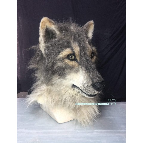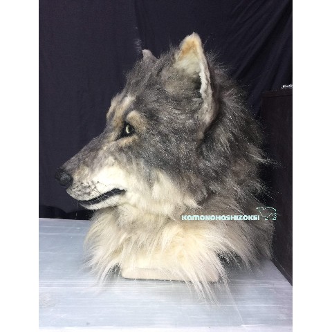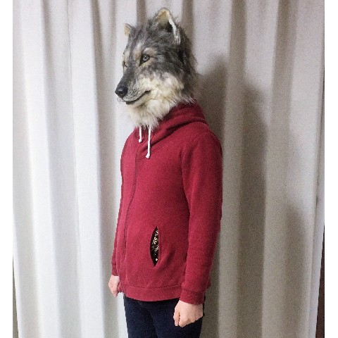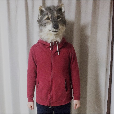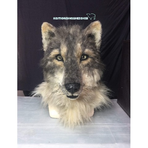 オオカミの、すっと見据える賢そうな表情を意識してつくりました。作り物っぽくない生きものらしさを表現するため、ベースとなる原型製作から毛並み、眼球まで全て手作業でつくっています。ぜひ観て、かぶって、撮って楽しんで頂けると嬉しいです。