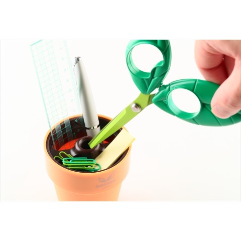 刃物の町「岐阜県関市」で企画製造された、これまでにない観葉植物をモチーフとしたハサミです。植木鉢型の容器は、ペン立てや小物入れにもなっているため、オフィスやリビングで活躍すること間違いなしです。癒されるような可愛らしいデザインで、部屋をオシャレに飾ってくれます。