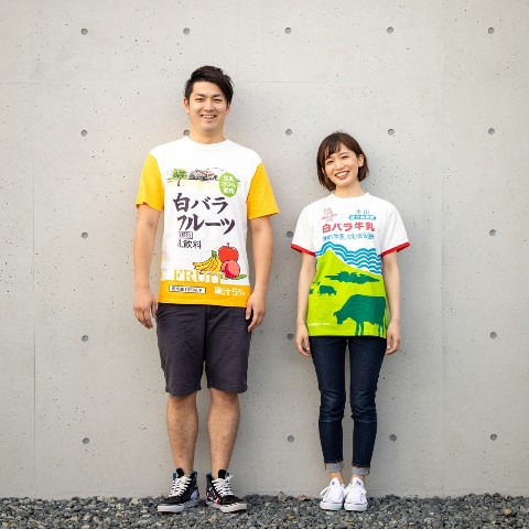 販売するたびに即完売となった「白バラ牛乳」Tシャツ。今回は大人気「白バラ牛乳」「白バラコーヒー」に加えて、なんと「白バラフルーツ」が新登場。細部にまでこだわりのつまったデザインです。タグのかわいさに注目!