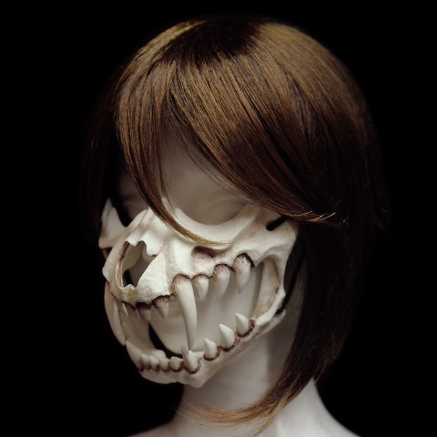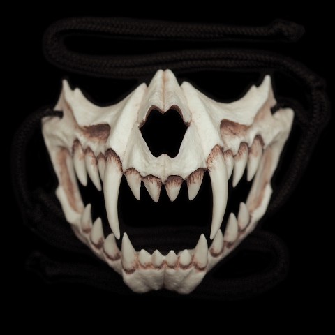 頬から顎をカバーするマスクは牙の間に空間を設けられており、従来のマスクのように声がこもらないため、着用中も快適な発声が可能です。