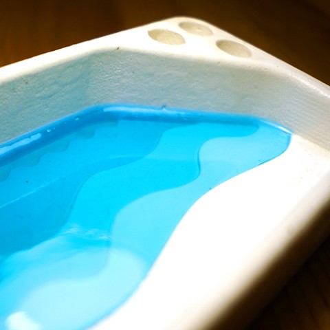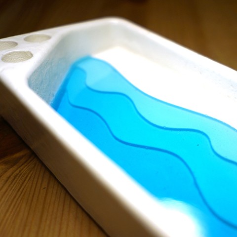 文具トレイにまるでゆっくり動いているかのような寄せては返す波のような穏やかな小さな海辺を表現しました。