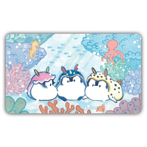 うみうしになった、もこぺんたちはきらきら海底探検隊!サンゴや海の仲間たちもあつまってにぎやかでカラフルなデザインです。