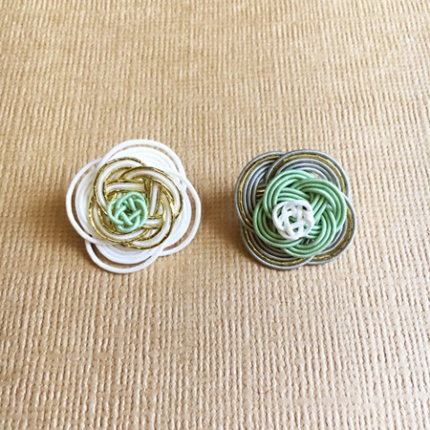 おめでとう”、“ありがとう”の気持ちをもっとオシャレに伝えられるような、水引きを使用したデザインアイテムをデザイン・制作しています。1点ずつ、使用する水引きと紙の色味に変化をつけて制作した1点物で、その時々のドレスアップに合わせてお選び頂きたい商品です。