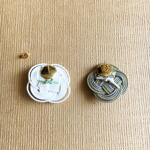 【OTUTUMI】菜の花結びのアシンメトリーピアス -White×Gray-