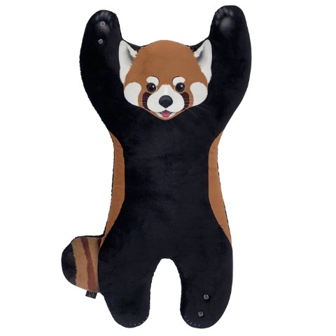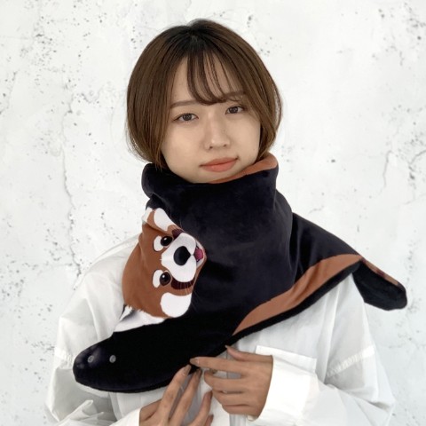 レッサーパンダの前足、後ろ足に各2個スナップボタンが付いていますので、首周り、腕等に装着する事ができます。ラグマットやひざかけ等としてもお使いいただけます。体に装着する以外も、自分だけの使い方を探す楽しみ。