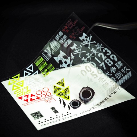 弾痕や傷といった定番デザインに加え、オリジナルの「猫ドクロマーク」や「猫耳ハザードマーク」も収録。