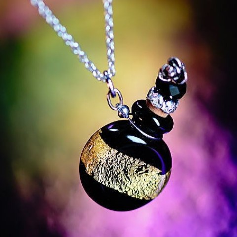 【La forme】香水瓶ペンダント / ラウンド・ブラック(金箔)