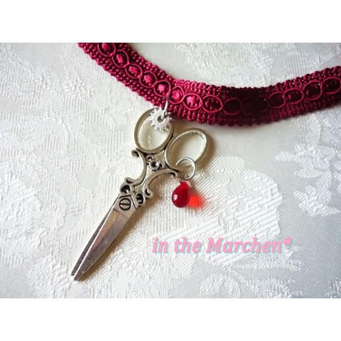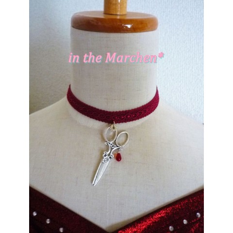 【in the Marchen*】「銀古美のアンティークシザーと赤い雫のチョーカー」2 赤 童話的装飾