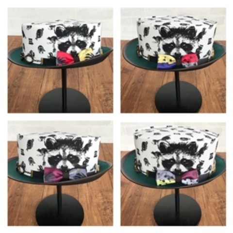 (アライグマの手の柄2色、デッキブラシの帽子くん柄2色)