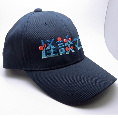 怪談マニアの為のオリジナルロゴ刺繍キャップです。被っているだけでいろんな人が怪談を教えてくれるかも?内側にはブランドタグが付いています。