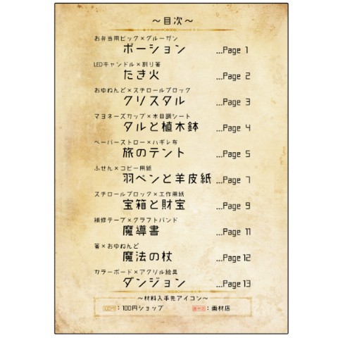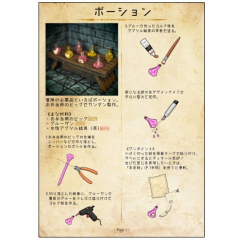 100均グッズを組み合わせて、ファンタジーなミニチュアをつくるための同人誌。