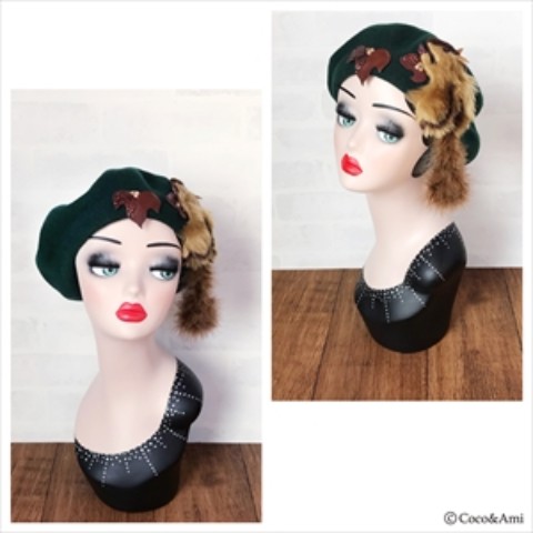 サイドに揺れるふわふわ尻尾はピン内蔵で、帽子にとめるとくるんと上向きに変更できる優れもの。髪型やお洋服、その日の気分でお好きにご使用ください。