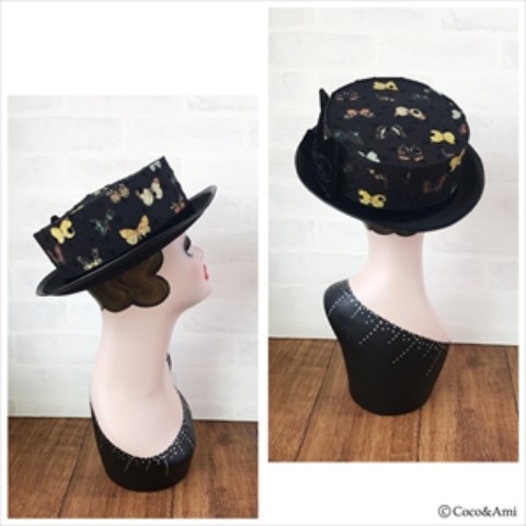 サイドのベロアリボンも蝶ーに見立てたこだわりパターンです。