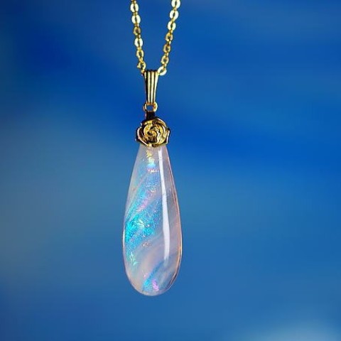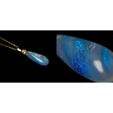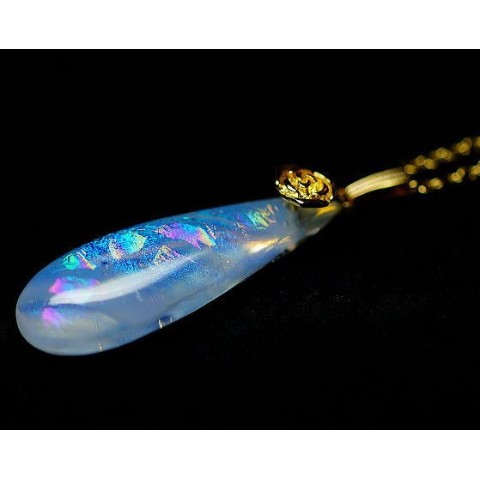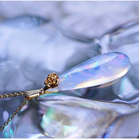 吹雪の中に射す一瞬の日差しに粉雪が煌いた繊細で幻想的な白銀世界。そんな儚くも美しい冬景色を再現した、世界にひとつのガラスのティアドロップタイプペンダント。あまりにも繊細なその煌きは決して数枚の写真ではお伝え出来ません。ぜひお手に取ってその煌きをお楽しみください。