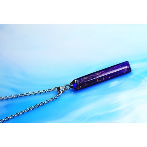 ガラスアクセサリー / コレクション:ネックレス・ペンダント / 191219-112753 / 3599 / アメリカンガラス / 約34×6×4mm / 青紫系 イリデセント(ラメ)加工 / あずきチェーン ステンレス製 50cm / La forme