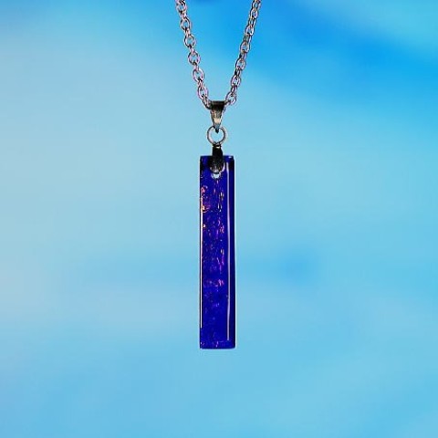 直線的でシャープなフォルムが印象的な長方形タイプペンダント。コバルトブルーをベースに見る角度や光の当たり方で美しい表情を見せてくれます。細身のフォルムがシンプルでスタイリッシュな逸品です。