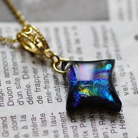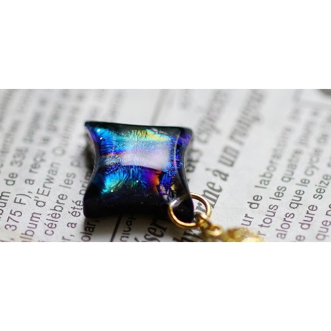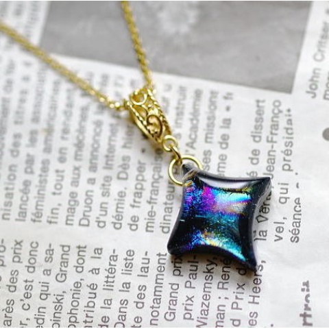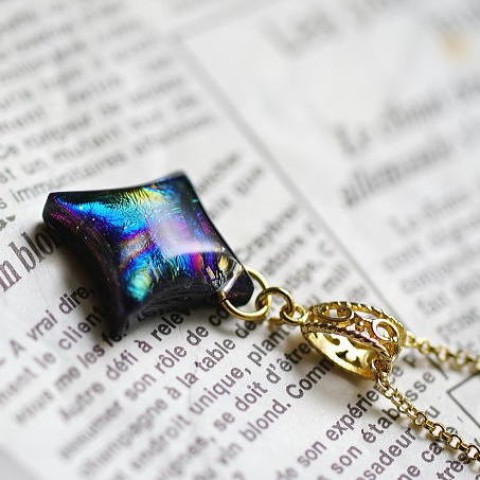 美しく神秘的な煌きを閉じ込めた変形のひし形の星。漆黒の宇宙に煌く星のような素敵なペンダントです。ゴールドパーツとの相性も良く華やかな印象に仕上がっております。