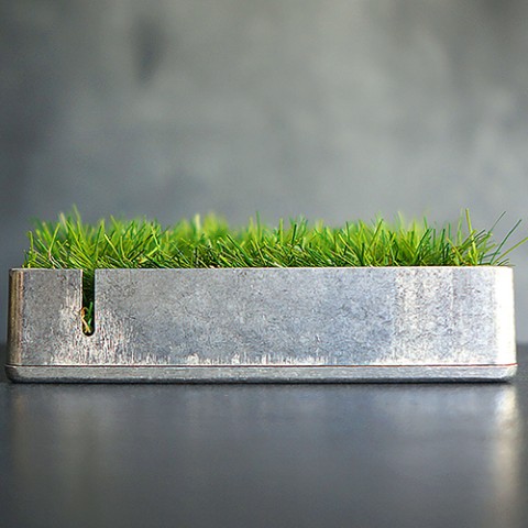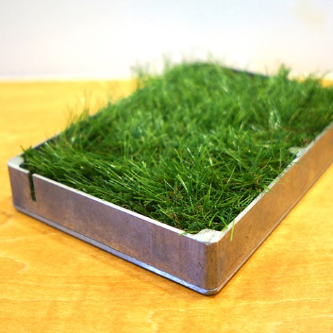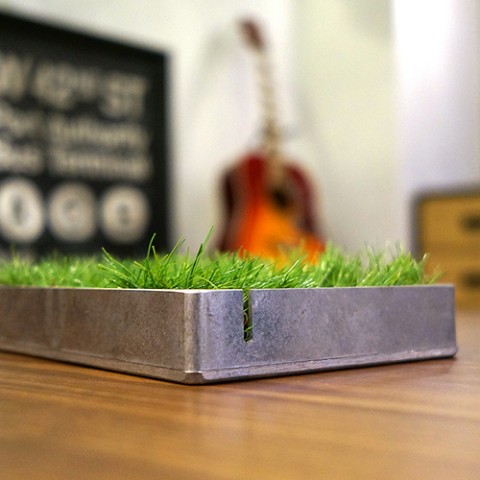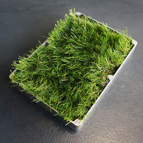 本物のようなリアルな人工芝で手前に押して沈み込ませ見やすい状態をキープデスク上に小さな公園を表現しました