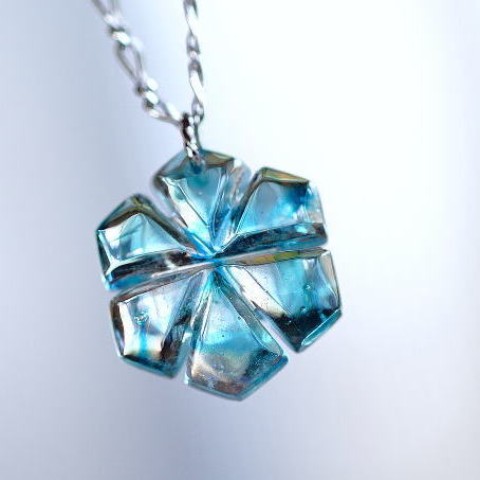 高級輸入素材ガラスを使用して、模様の表現から全ての面を鏡面まで手磨きで仕上げた、ガラスアクセサリー。
